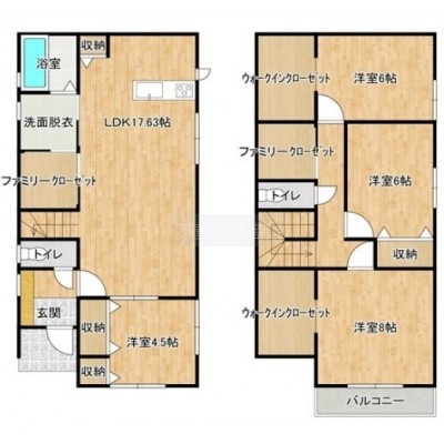 4LDK(107.65m²)└ LDK17.63帖 洋室4.5帖 洋室8帖 洋室6帖 洋室6帖