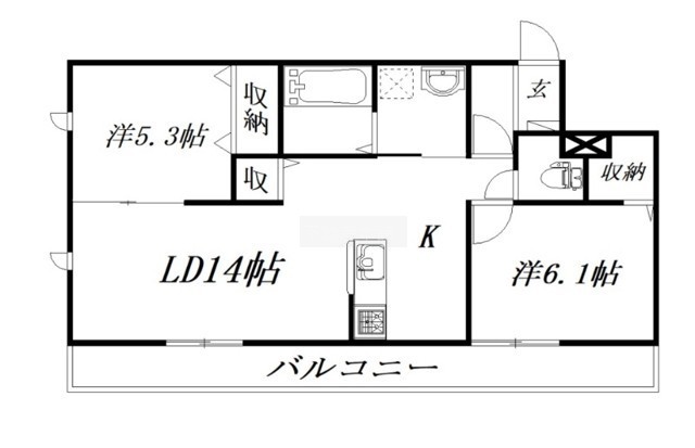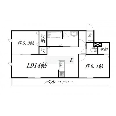 2LDK(57.88m²)└ LD14帖 K1帖 洋室5.3帖 洋室6.1帖