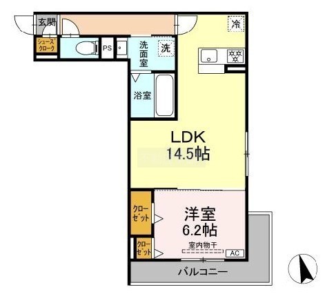 1LDK(50.61m²)└ 洋室6.2帖 LDK14.5帖