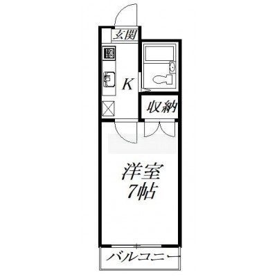 1K(20.36m²)└ 洋室7帖 K2帖