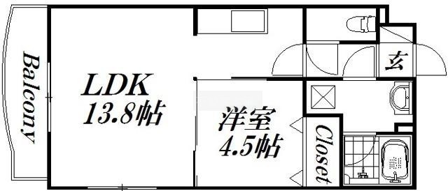 1LDK(41.4m²)└ 洋室4.5帖 LDK13.8帖