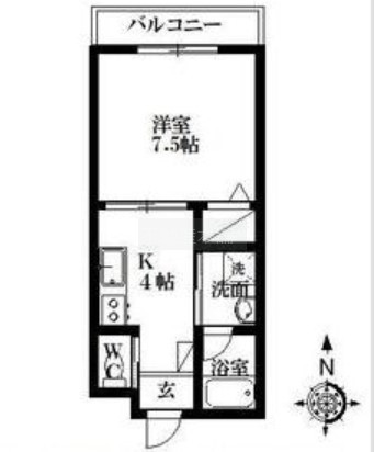 1K(27.99m²)└ 洋室7.5帖 K4帖