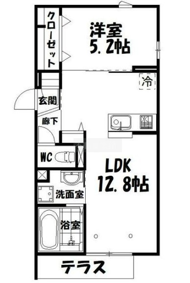 1LDK(42.09m²)└ LDK12.8帖 洋室5.2帖