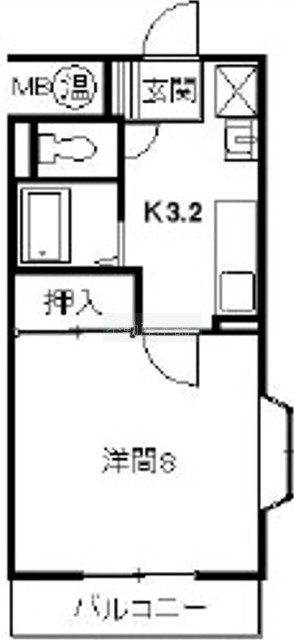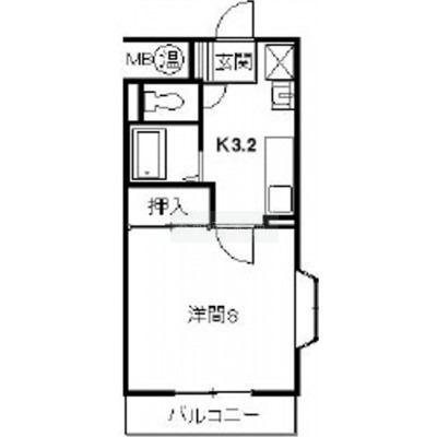 1K(27.18m²)└ 洋室8帖 K3.2帖