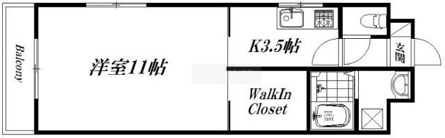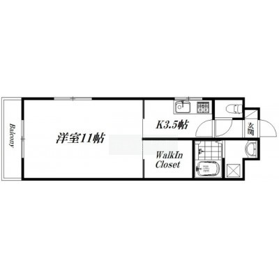 1K(36m²)└ 洋室11帖 K3.5帖