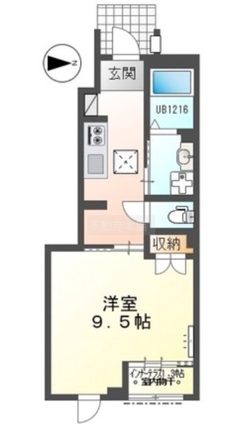 1K(33.56m²)└ K1帖 洋室9.5帖