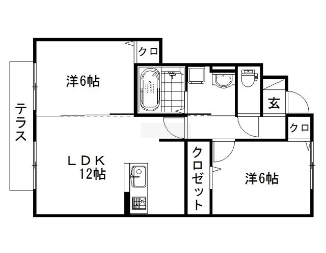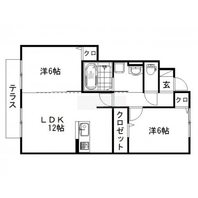 2LDK(57.39m²)└ 洋室6帖 洋室6帖 LDK12帖