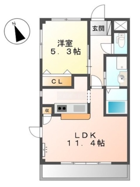 1LDK(40m²)└ LDK11.4帖 洋室5.3帖