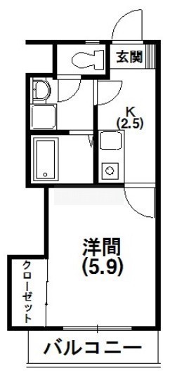 1K(22.4m²)└ 洋室5.9帖 K2.5帖