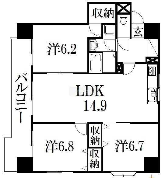 3LDK(74.09m²)└ 洋室6.2帖 洋室6.7帖 洋室6.8帖 LDK14.9帖