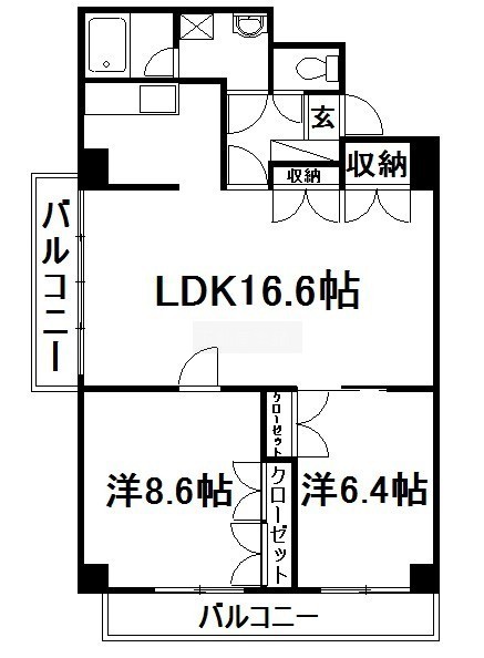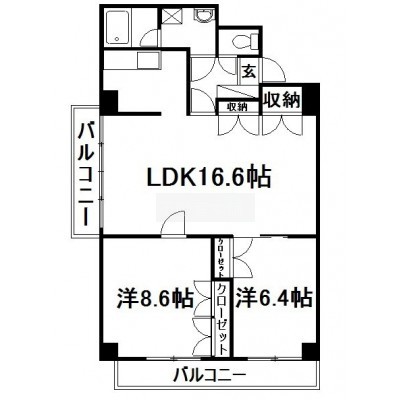 2LDK(74.52m²)└ 洋室6.4帖 洋室8.6帖 LDK20.6帖