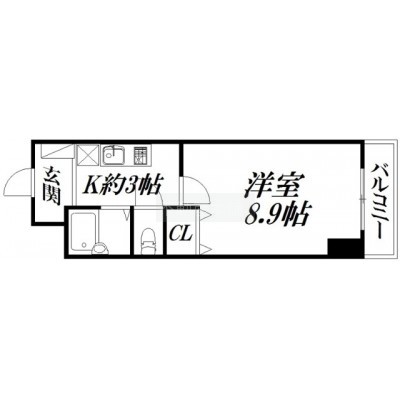 1K(26.6m²)└ 洋室8.9帖 K2.8帖