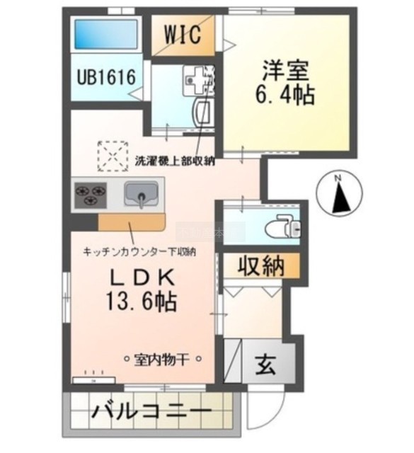 1LDK(48.46m²)└ LDK13.6帖 洋室6.4帖