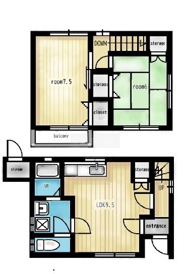 2LDK(57.82m²)└ LDK9.5帖 洋室7.5帖 和室6帖