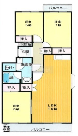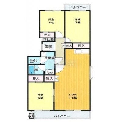 3LDK(73.93m²)└ 洋室6帖 洋室7帖 洋室5帖 LDK16帖