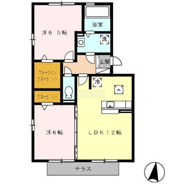 2LDK(58.37m²)└ 洋室6.5帖 洋室6帖 LDK12帖