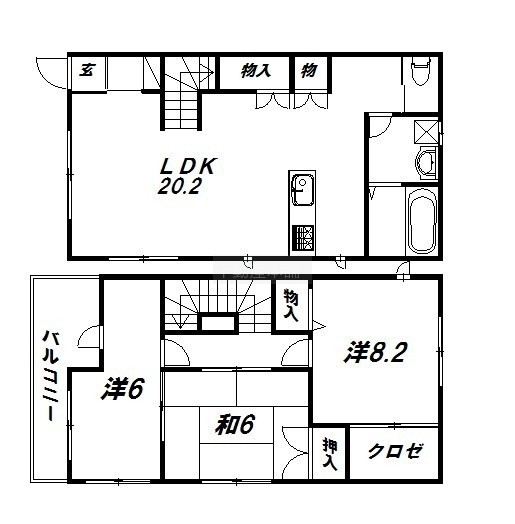 3LDK(96.46m²)└ LDK20.2帖 和室6帖 洋室8.2帖 洋室6帖