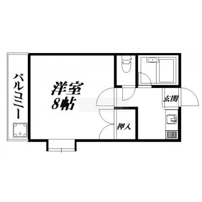 1K(22.2m²)└ 洋室8帖 K1帖