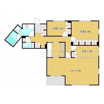 3LDK(92.22m²)└ 洋室4.5帖 洋室8.9帖 洋室5.1帖 LDK19.3帖