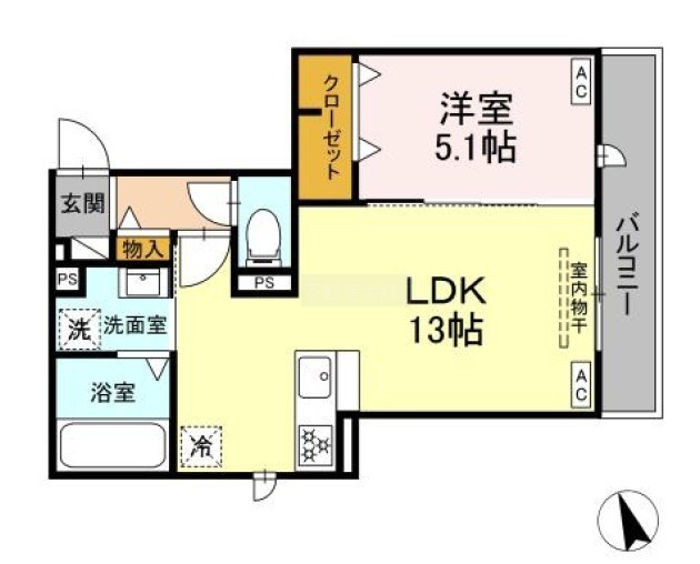 1LDK(42.72m²)└ 洋室5.1帖 LDK13帖