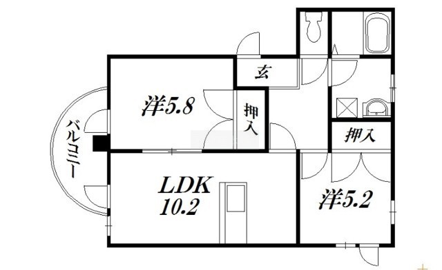 2LDK(50.68m²)└ 洋室5.2帖 洋室5.8帖 LDK10.2帖