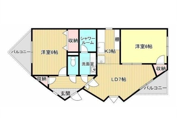 2LDK(55.9m²)└ 洋室6帖 LD7帖 K3帖 洋室6帖