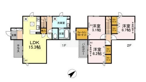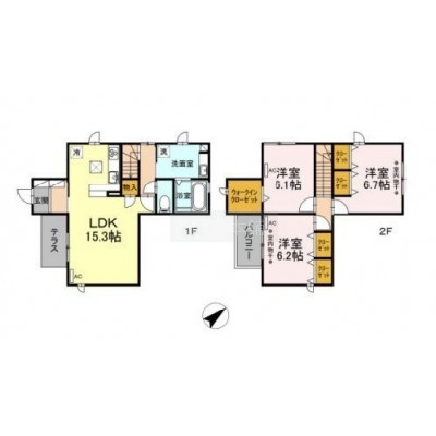 3LDK(87.6m²)└ 洋室6.1帖 洋室6.2帖 洋室6.7帖 LDK15.3帖