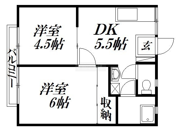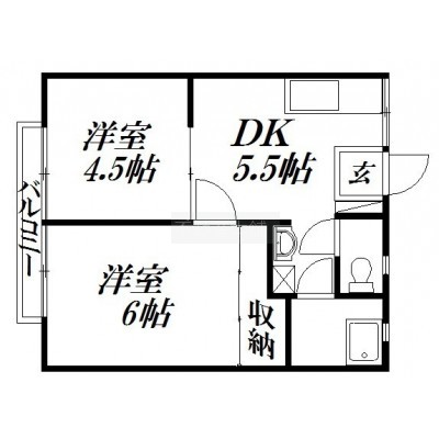 2DK(34m²)└ 洋室6帖 洋室4.5帖 DK5.5帖