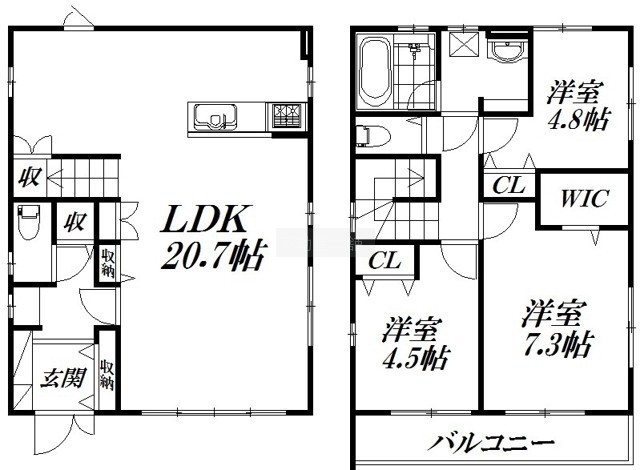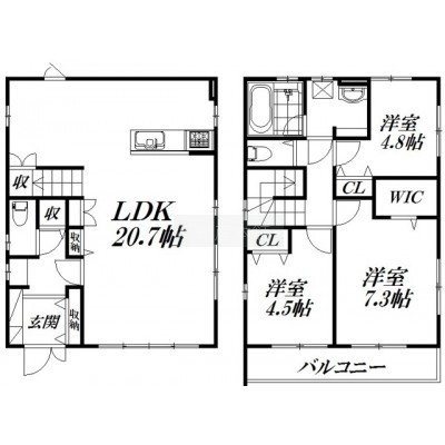 3LDK(91.5m²)└ LDK20.7帖 洋室4.8帖 洋室7.3帖 洋室4.5帖