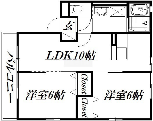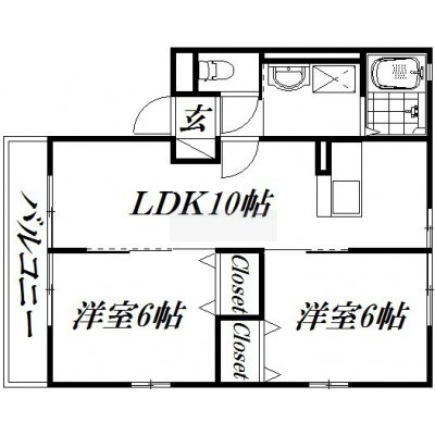 2LDK(49.85m²)└ 洋室6帖 洋室6帖 LDK10帖