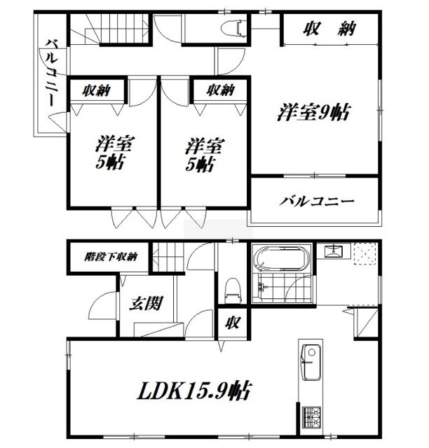 3LDK(88.6m²)└ LDK15.9帖 洋室5帖 洋室5帖 洋室9帖