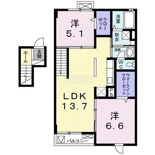 2LDK(60.18m²)└ 洋室6.6帖 洋室5.1帖 LDK13.7帖