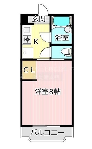 1K(22.19m²)└ 洋室8帖 K3帖