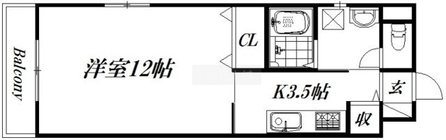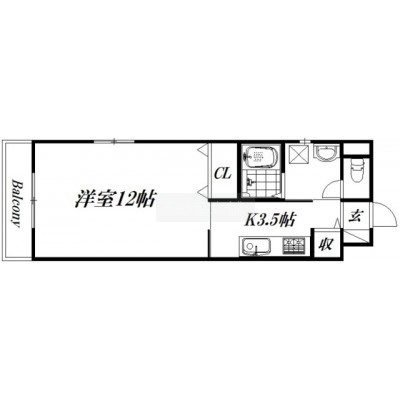 1K(38.2m²)└ 洋室12帖 K4帖