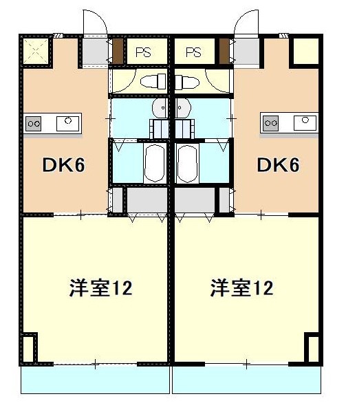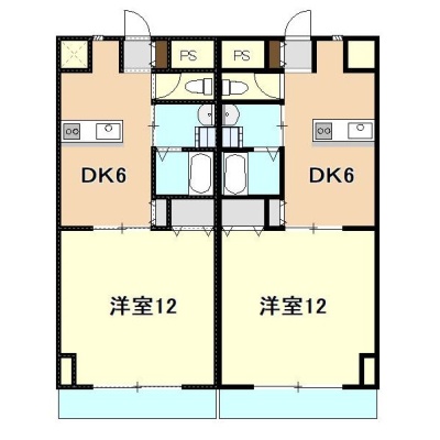 1DK(40m²)└ DK6帖 洋室12帖
