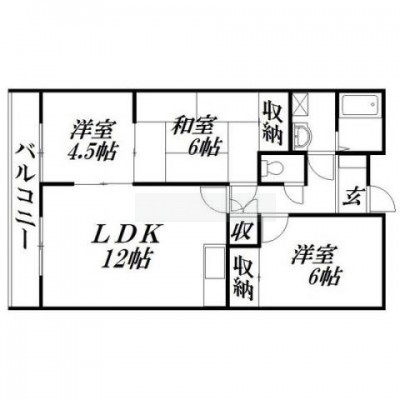 3LDK(64.38m²)└ 和室6帖 洋室6帖 洋室4.5帖 LDK12帖
