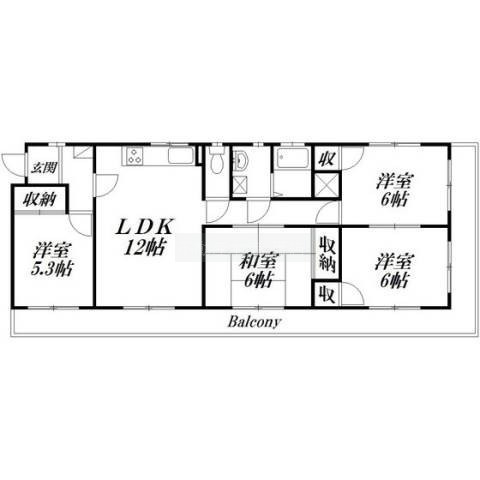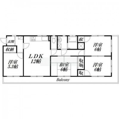 4LDK(79.3m²)└ 和室6帖 洋室6帖 洋室6帖 洋室5帖 LDK12帖