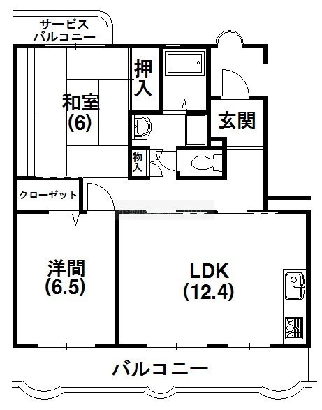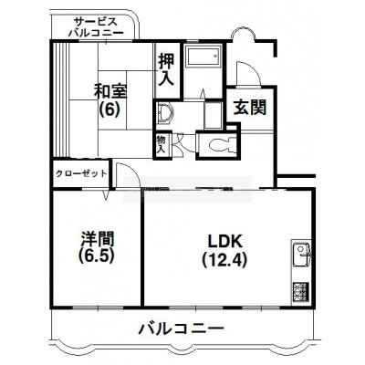 2LDK(61.24m²)└ 和室6帖 洋室6.5帖 LDK12.4帖