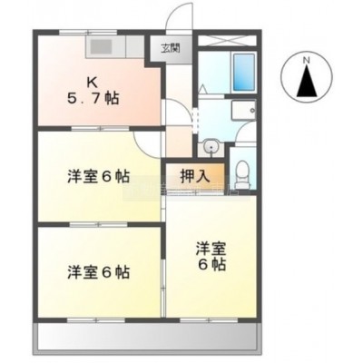 3DK(49.5m²)└ 洋室6帖 洋室6帖 洋室6帖 DK5.7帖