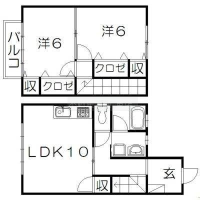 2LDK(57.96m²)└ 洋室6帖 洋室6帖 LDK10帖