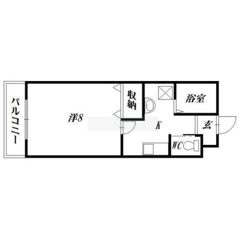 1K(25.42m²)└ 洋室8帖 K4帖
