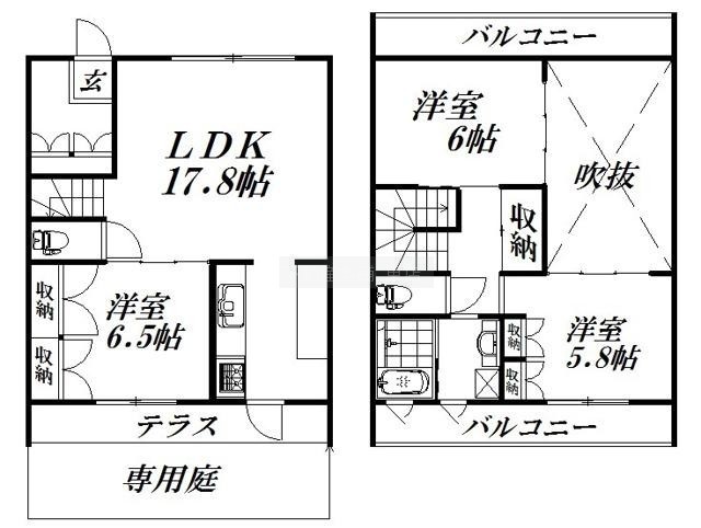 3LDK(84.9m²)└ 洋室5.8帖 洋室6帖 洋室6.5帖 LDK17.8帖