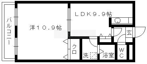1LDK(44.88m²)└ 洋室10.9帖 LDK9.9帖