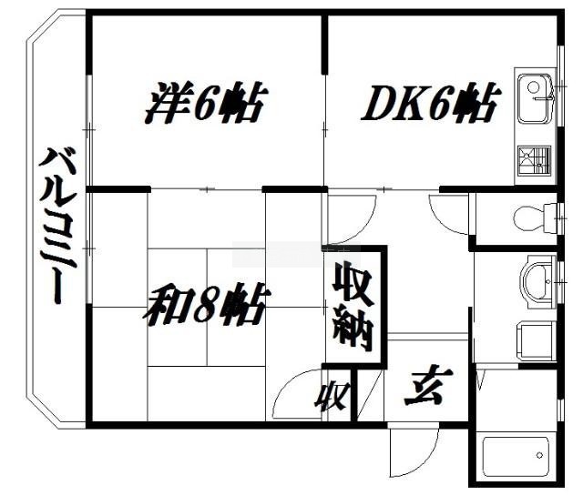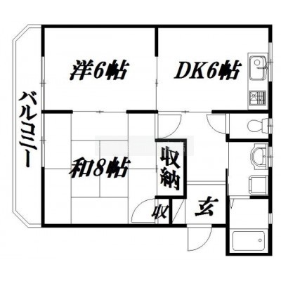 2DK(47.16m²)└ 洋室6帖 和室8帖 DK6帖