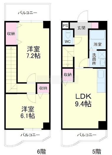 2LDK(59.11m²)└ 洋室7.2帖 洋室6.1帖 LDK9.4帖