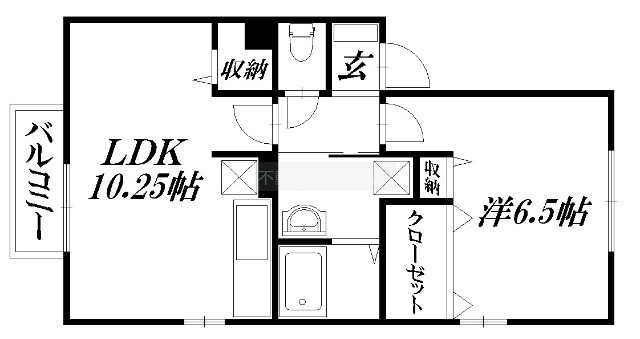 1LDK(41.25m²)└ LDK10.25帖 洋室6.5帖