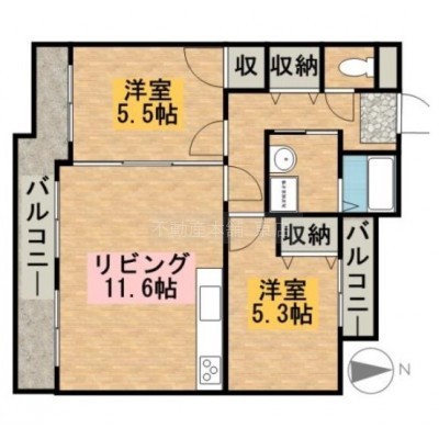 2LDK(55.16m²)└ 洋室5.5帖 洋室5帖 LDK11.4帖
