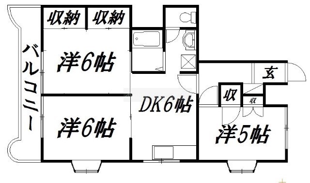 3DK(54.45m²)└ 洋室6帖 洋室5.5帖 洋室6帖 DK6帖
