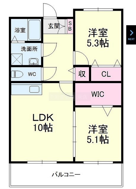 2LDK(51.44m²)└ 洋室5.3帖 洋室5.1帖 LDK10帖