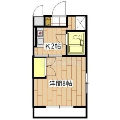 1K(22.08m²)└ 洋室8帖 K2帖